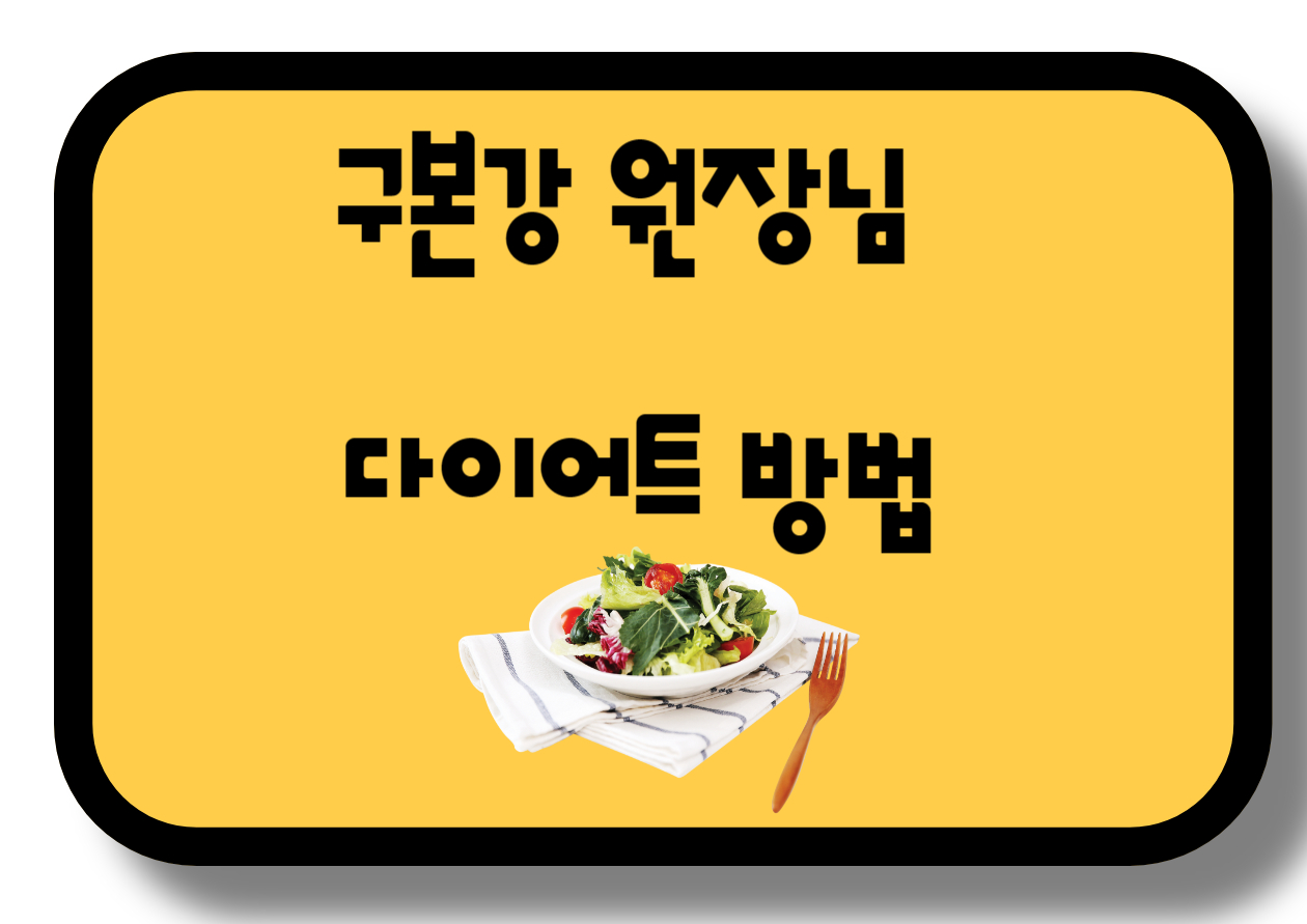 화제의 인물 구본강 원장님께서 고안해 내신 다이어트 방법입니다. 잦은 회식과 과한 근무시간 또는 육아 때문에 운동시간이 확보가 되지 않는 분들을 위한 다이어트 방법입니다. 이런 많은 업무들에 지쳐있는 분들을 위한 효과적으로 살을 뺄 수 있는 방법들을 소개하고 있습니다 화제의 인물이신 구본강 원장님의 다이어트 방법에 대해서 알아보도록 하겠습니다.