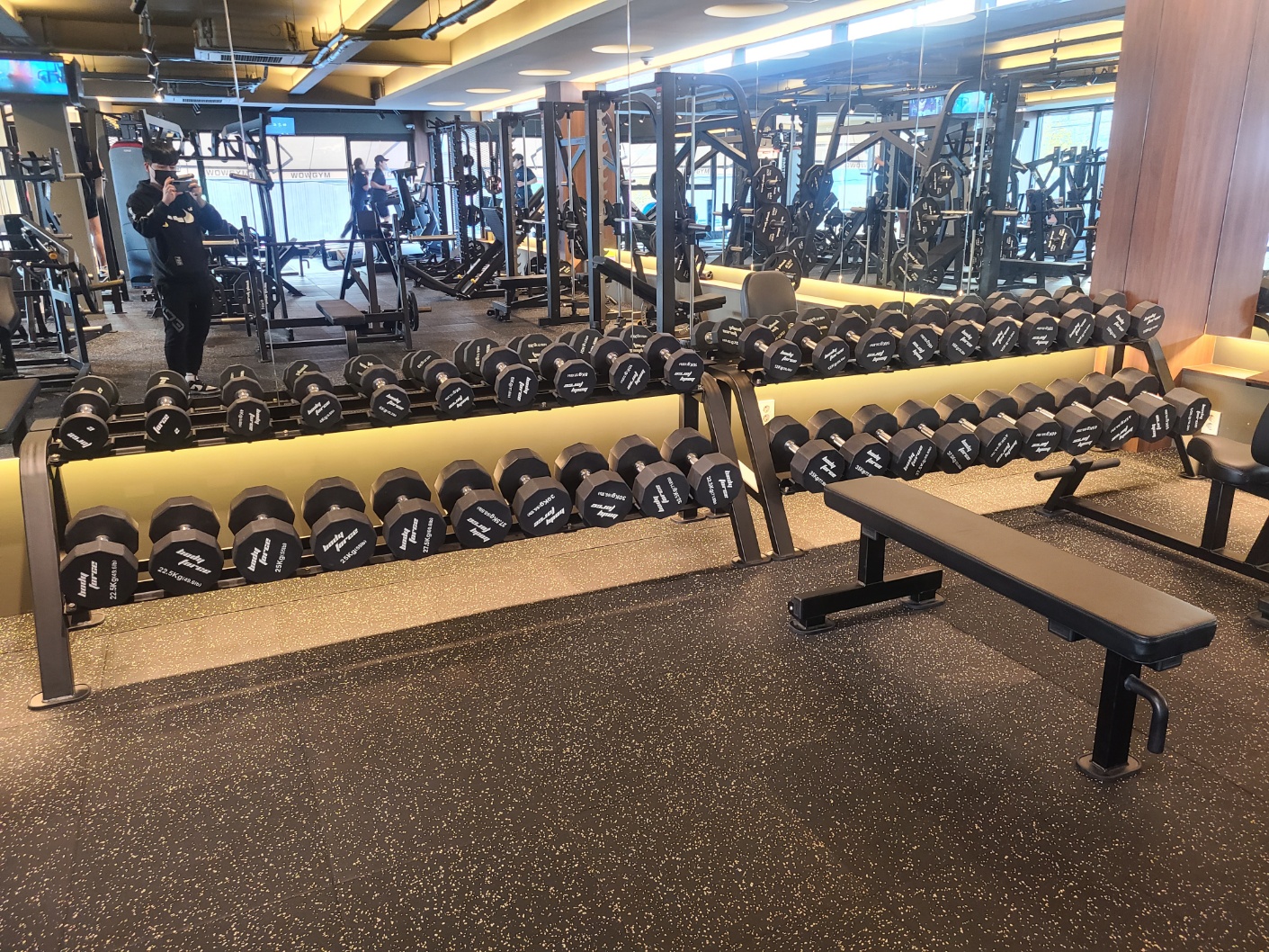 머신들과 덤벨들이 전체적으로 새것이기도 하고많은 머신들이 있어 이용하기에 불편함을 느끼지 않고 이용할 수 있는 장점이 있습니다. 2층에는 스미스머신 2개 프리렉 1개 가 구비되어 있고 그 외에도 많은 머신들이 있어 운동을 하는 데에는 전혀 불편함을 느끼지 못했습니다. 명품 머신이라 좀 더 효과적으로 운동할 수 있는 효과가 있습니다.