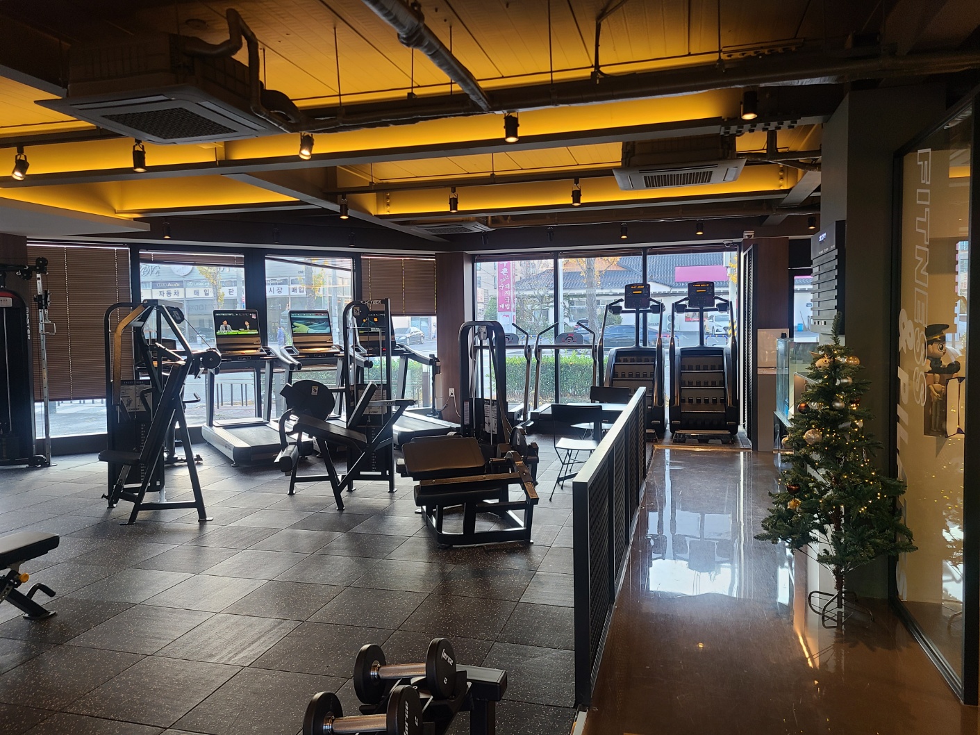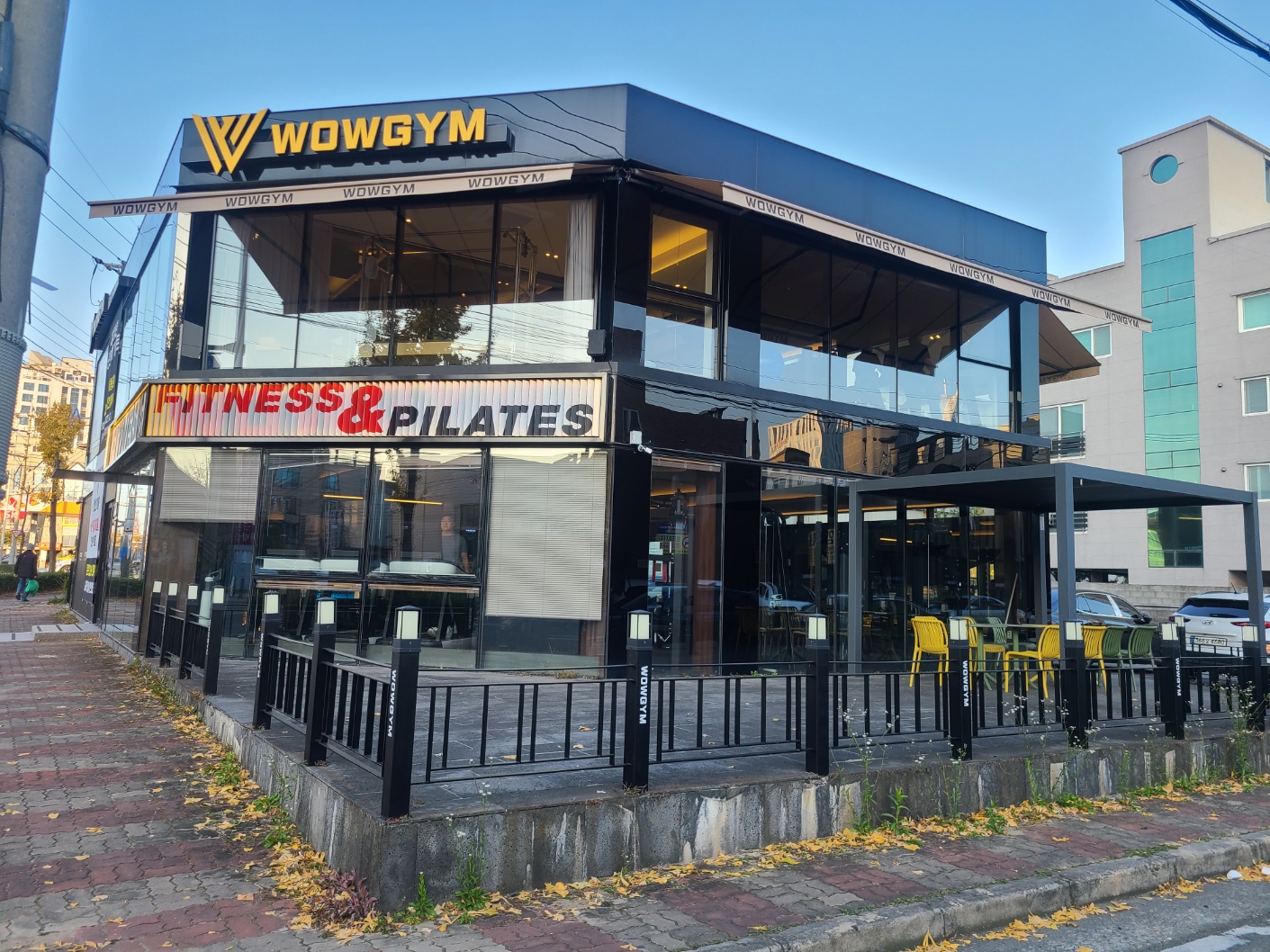 아주 깔끔한 건물이 보입니다. 밖에 테라스도 있어 운동 끝난 뒤 커피나 식단을 챙길 수 있는 장점이 있습니다.