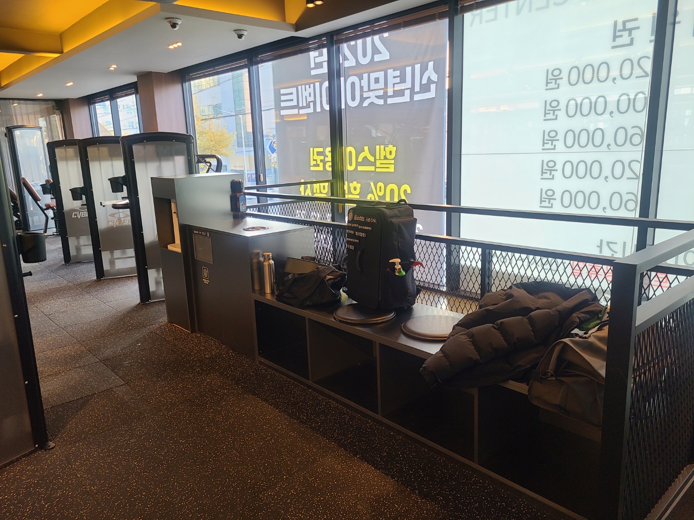 2층에는 가방을 나둘수있는 공간 정수기 쓰레기통이 있으니 좀더 간편하게 이용할수있는 장점이 있습니다.